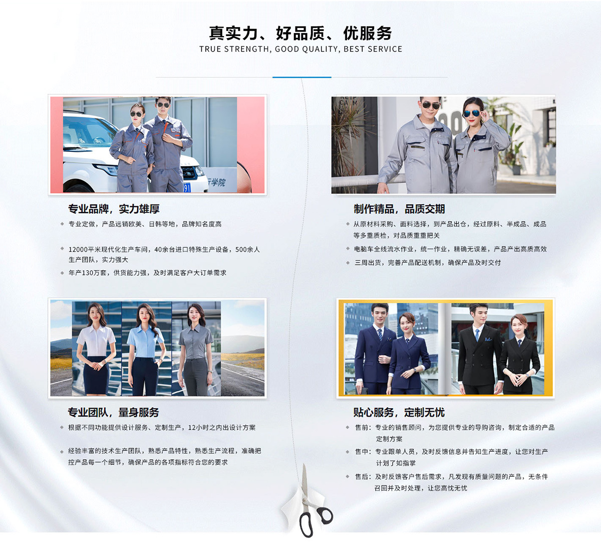 ◆ 融入我們的生產和設計中,為客戶提供完美的工作裝產品!